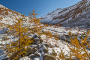 Vallon de Pelouse et ses mélèzes clairsemés | 1/60 s à f/9,0 - 100 ISO - 21 mm | 26/10/2011 - 15:32 | 44°22'30" N 6°50'28" E | 2038 m
